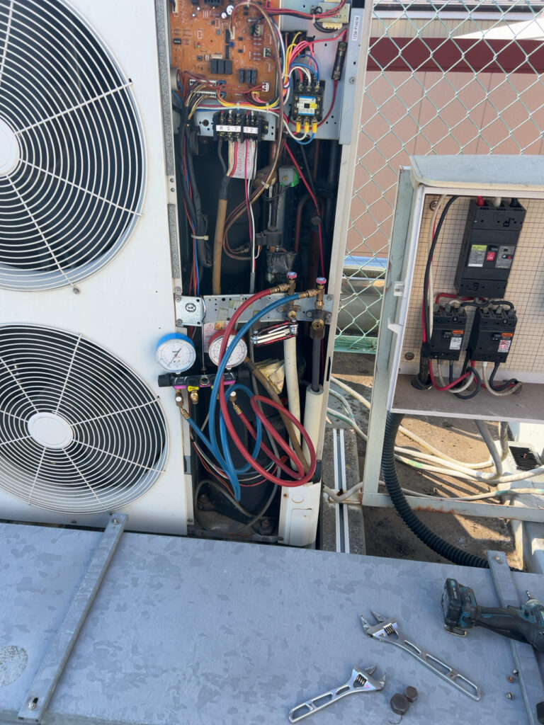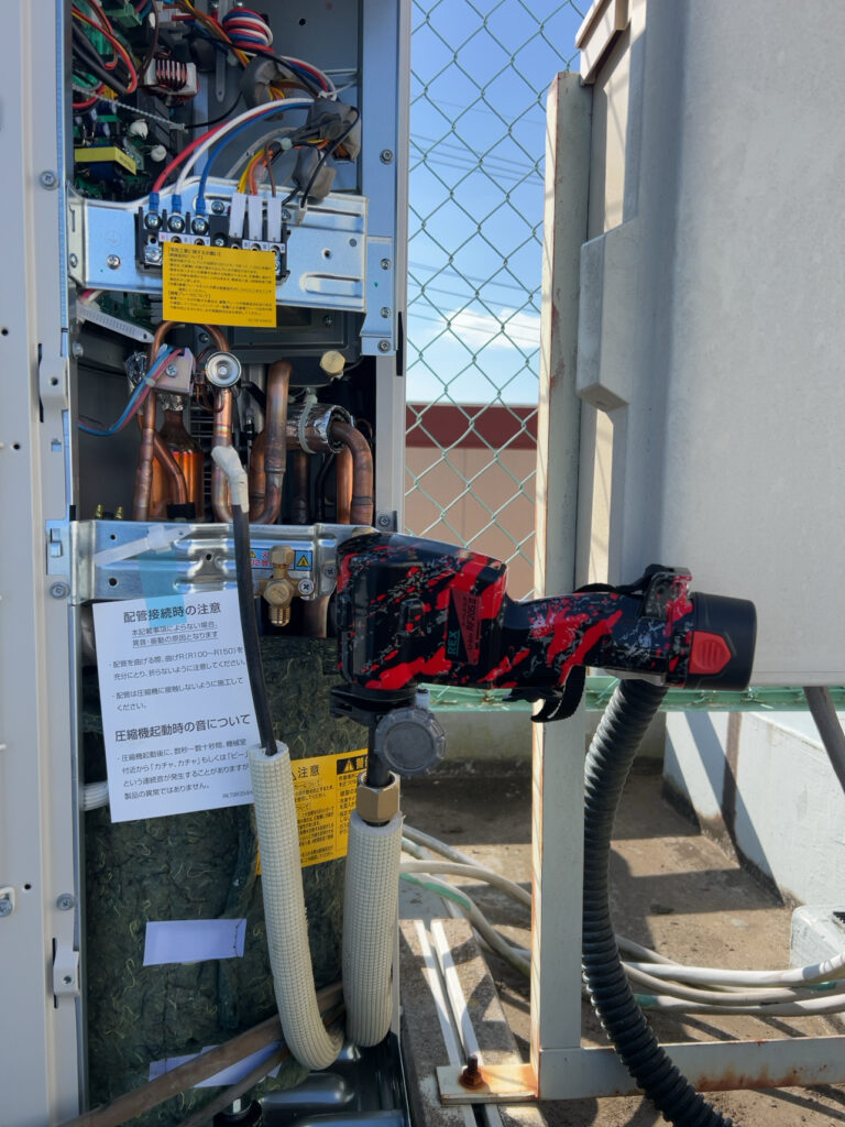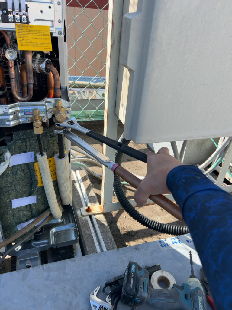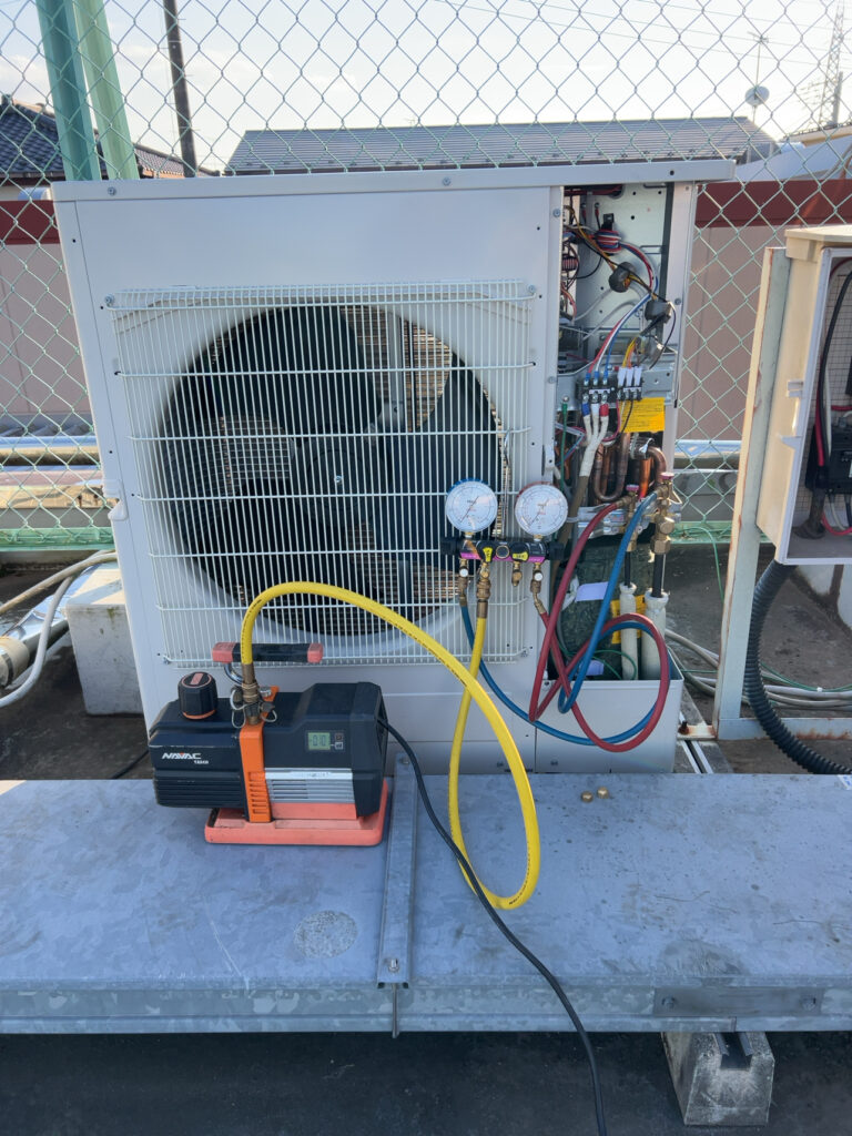 撤去前に屋上にある業務用室外機にフロンガスを
