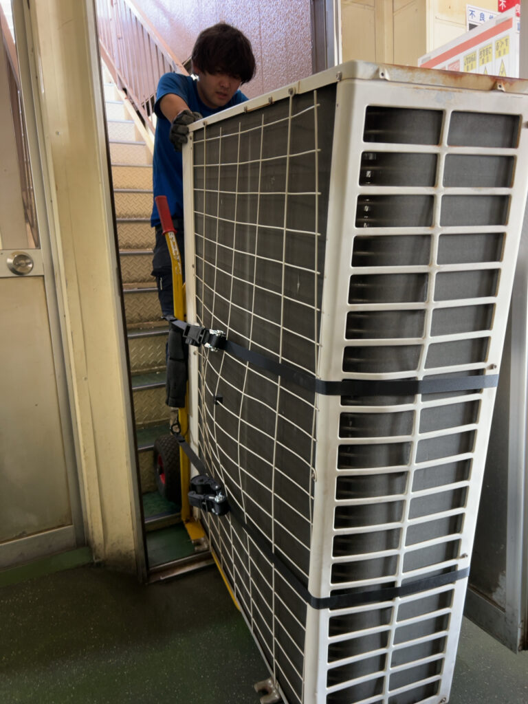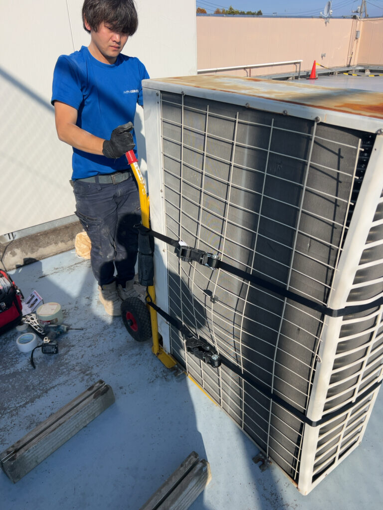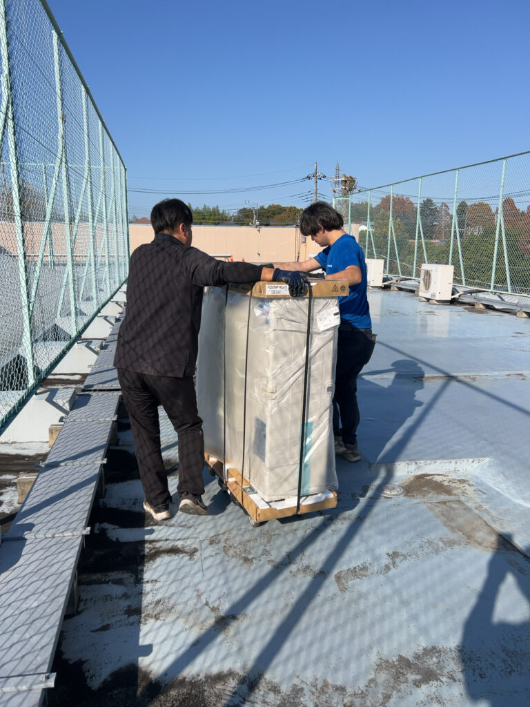 今度は屋上へ搬入です最新機種なので少し軽いです