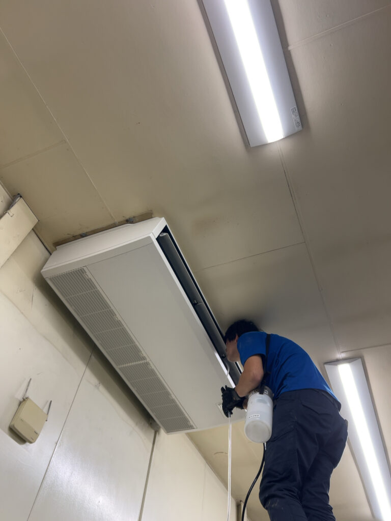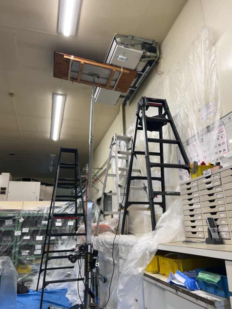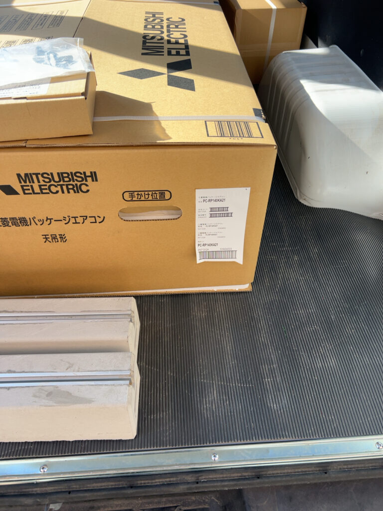 こんにちは!ハイテック空調です、今回のお仕事は業務用天吊型エアコン