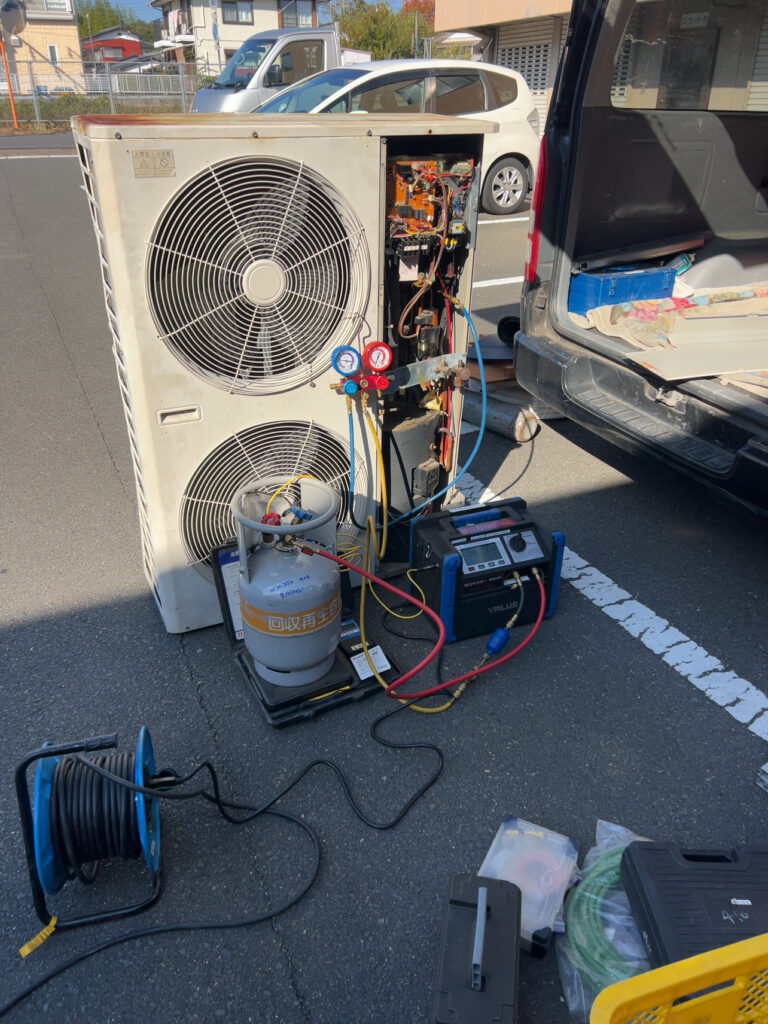 回収していきます、地上で冷媒回収作業をするためです