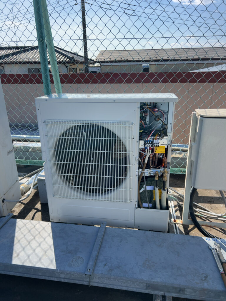 業務用エアコン、室外機も取付完了です。