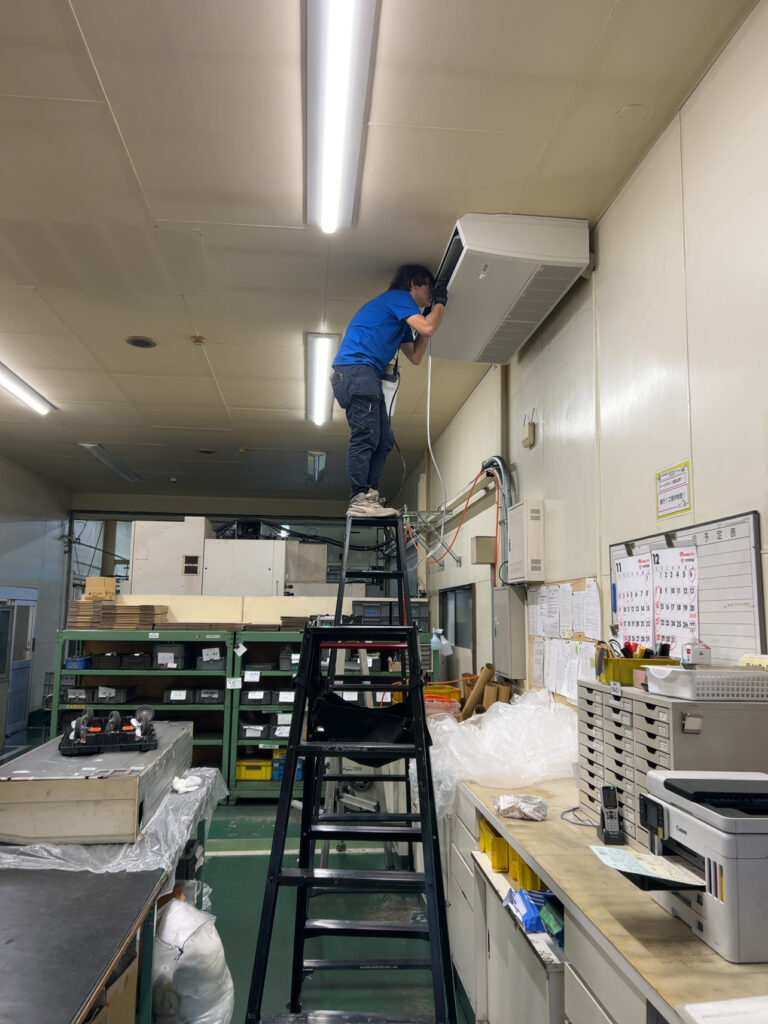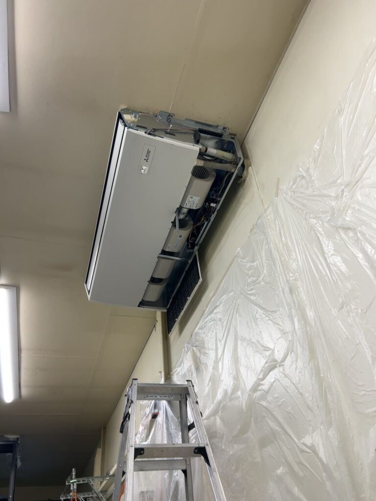 新しい業務用エアコンの室内機も取付完了です