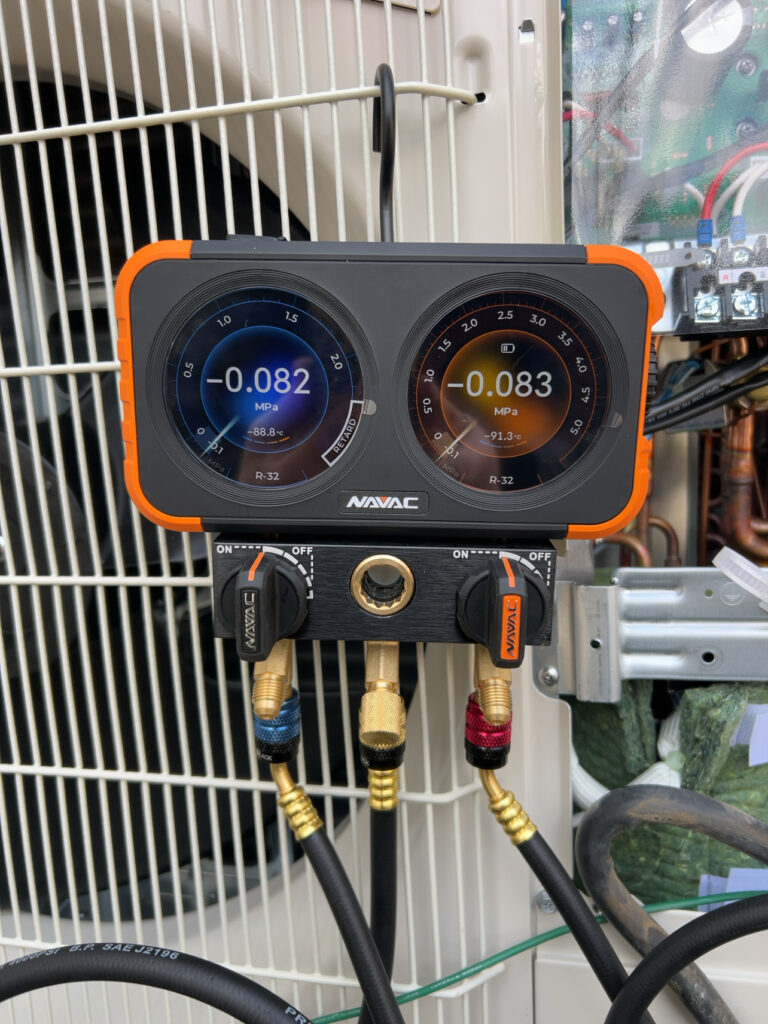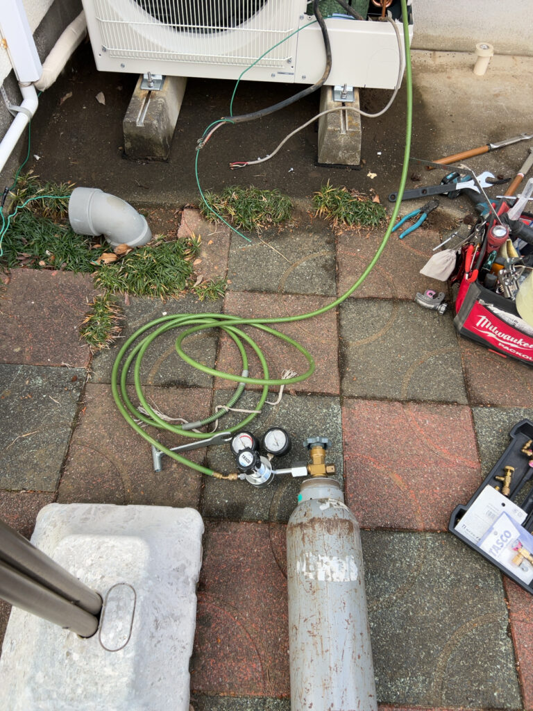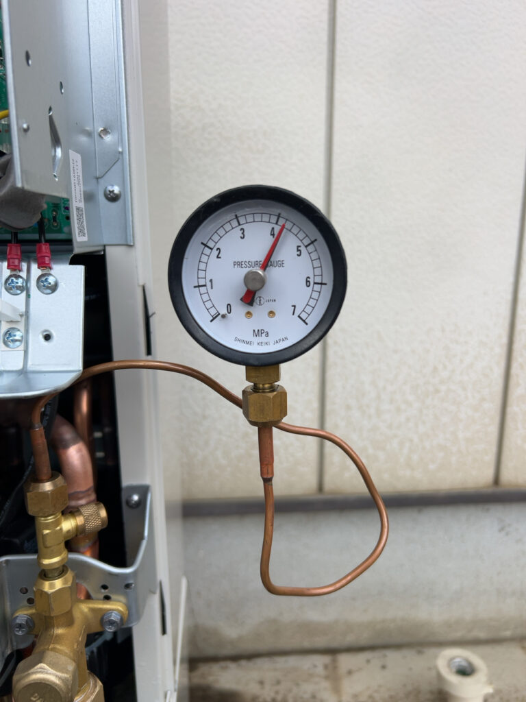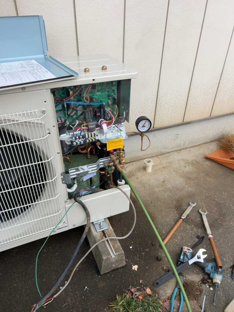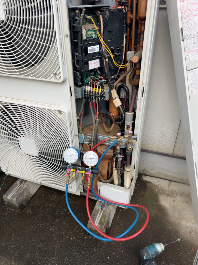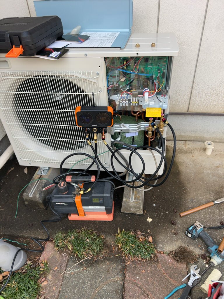 後は業務用エアコンの真空引きをして試運転ですね