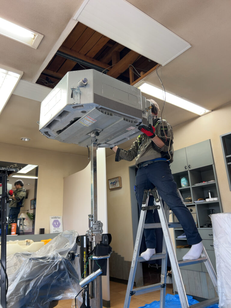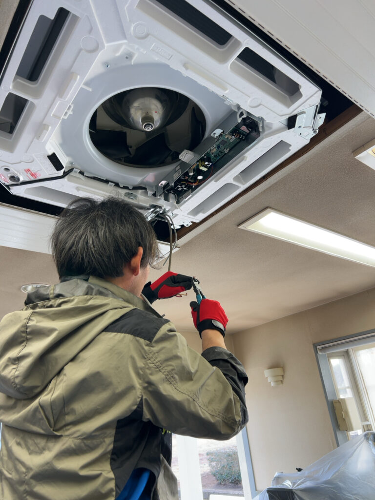 今回は、土浦市で天カセ型のエアコンの入替工事