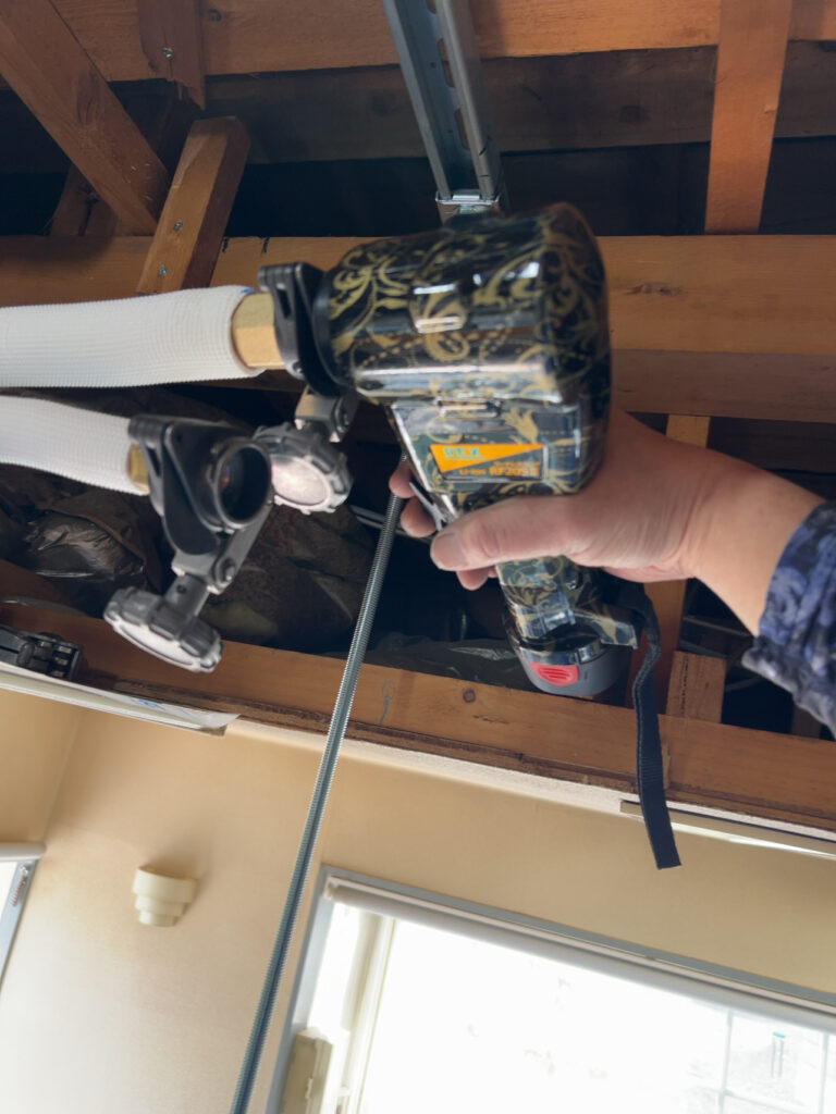 新しい室内機を取り付けて配管を接続完了です、