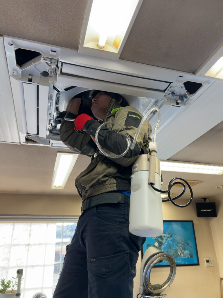 業務用エアコンについては販売から取り付け工事、修理やメンテナンス等々、何でもご対応しておりますので