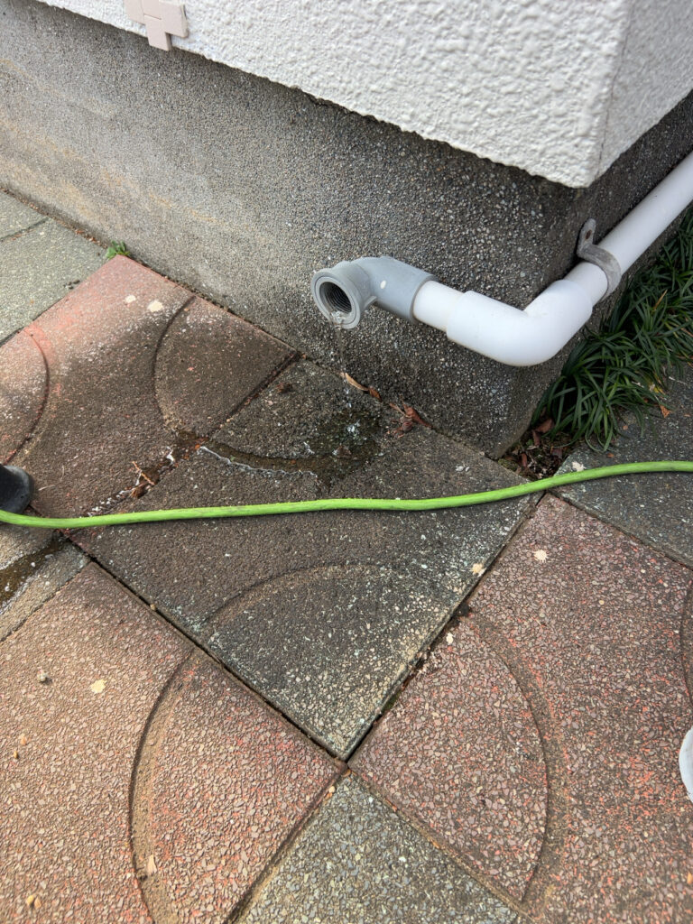 ドレンの通水試験をします、試運転前に確認できるので